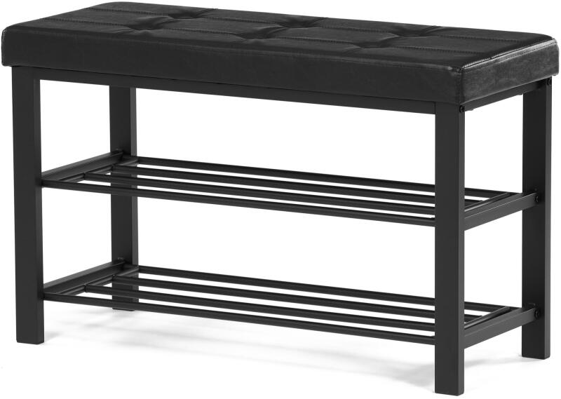Autronic Cipőtartó, 2 polcos, fekete öko-bőr huzat, fém, matt fekete lakk