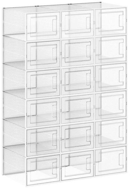 A cipőtartó minden rekesze kiváló minőségű csatlakozóelemekből, műanyag panelekből és masszív acélhuzalból készül, és akár 5 kg terhelést is elbír.