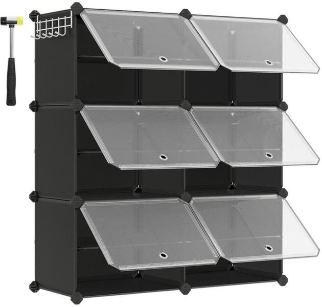 BOXIFY polc Egymásra rakható és testre szabható a helyiséghez és az igényeihez, így maximalizálja a folyosó minden centiméterének kihasználtságát. A rendező akár 24 pár cipőt is tárol, emellett táskák és ruhák tárolására is alkalmas. Oldalsó, helytakarékos kampókkal rendelkezik a kalapok vagy kutyapórázok felakasztásához. A szekrény minden rekesze kiváló minőségű csatlakozóelemekből, műanyag panelekből és masszív acélhuzalból készül, rekeszenként akár 5 kg teherbírással. Gyorsan szétszerelhető tároláshoz vagy szállításhoz, így könnyen átrendezheti a lakásban. Alakítsa különálló egységekké, vagy akár ossza két kisebb polcra cipők, ruhák vagy piperecikkek rendszerezéséhez, fürdőszobába vagy bármely más kívánt helyiségbe. A csomag tartalmaz felborulásgátló készletet, amely biztosítja a stabilitást. Átlátszó ajtóval rendelkezik, amely por- és vízálló védelmet nyújt, miközben egyszerű hozzáférést biztosít. Az ajtókon található kivágások megkönnyítik a nyitást és elősegítik a szellőzést. Méreteinek köszönhetően tökéletesen illeszkedik a legtöbb helyiségbe, és segít funkcionális, otthonos teret kialakítani. Masszív szerkezete évekig tartó tartósságot biztosít. Csomagolási információk: 1. doboz: 32 x 15,5 x 43 cm (6,5 kg).