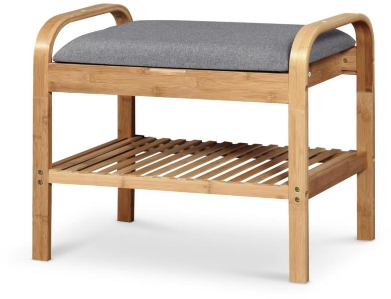 Szürke pad bambusz kialakítással ST12 skandináv stílusban   elegáns lakáskiegészítő és egyben praktikus segítő, amit könnyen megszeretsz. Itt tükröződik az egyszerű és visszafogott dizájn a praktikummal, melyet a rejtett tárolóhely a párnázott ülőke alatt biztosít. Természetes anyagok kedvelői  értékelni fogják a természetes bambuszból készült kialakítást , amely erős és tartós. Párnázott ülőrésze  magas kényelmet biztosít. A szürke színű huzat anyaga kellemes tapintású és könnyen karbantartható. Örömet okoz a funkcionális kiegészítő, mint például a cipőtartó polc.  Lakj stílusosan!MéretekSzélesség 60 cm Mélység 33 cm Magasság 50 cm Teherbírás 60 cm Súly 5,5 kgAnyag és színAnyag Bambusz, szövet Szín Szürke / TermészetesKialakításSzétszer elve szállítva.