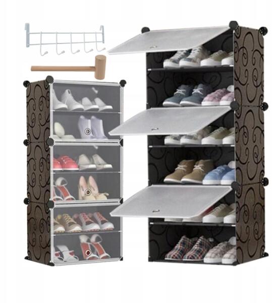 HÖGLER Moduláris Cipősszekrény Apróságok Tároló Komód Könyvespolc MX8 Fekete 6 Polc (3408)