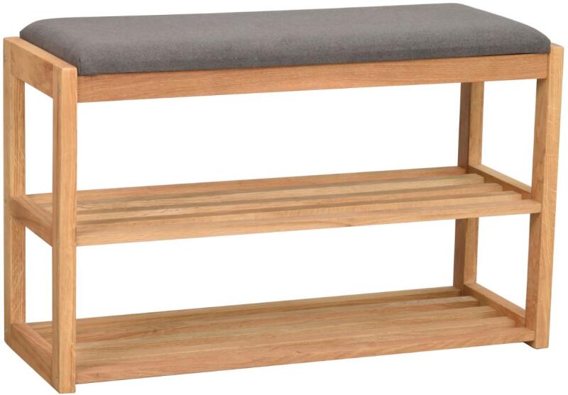 A CONFETTI cipőtartó tömör tölgyfából készült, és a cipők tárolására szolgáló két polc mellett egy praktikus ülőkével is rendelkezik. Sötétszürke szövetkárpitozású, és segít kényelmesebbé tenni a cipőjét. Ez tehát nemcsak tárolóhely, hanem ülőhely is. A CONFETTI sorozatban tárolóhelyekkel ellátott fogasokat és padokat is talál - előszobája új kabátot kaphat, és tökéletesen összehangolt lehet. A tömör fa hangulatos és meleg légkört is kölcsönöz neki.