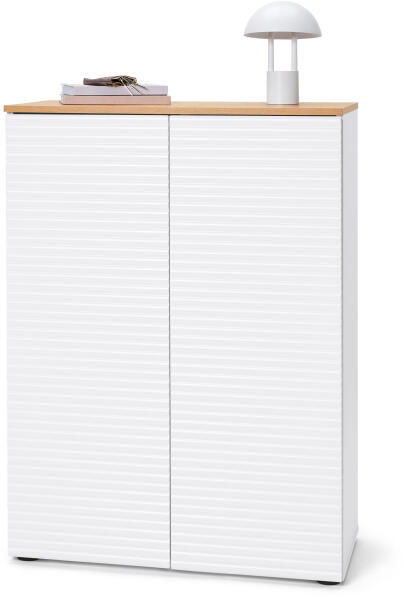 Cipősszekrény, 2 ajtós, fehér/fa Szín: Fehér Tető vadtölgy hatású Anyag: Korpusz: melaminbevonatú faforgácslap Ajtók: fóliázott faforgácslap Korpusz és felső lap: melaminbevonatú faforgácslap Méretek: Szé x ma x mé: kb. 80 x 109,5 x 38 cm Polcok egyenként: kb. 77 x 34 cm Tartalom: Fali rögzítéssel, állítható magasságú csúsztatókkal, szerelési anyaggal és útmutatóval Teherbírás: Felső és alsó lap egyenként: max. 15 kg Polcok egyenként: max. 8 kg Egyéb megjegyzések: A terméket lapraszerelten szállítjuk Szállítás 2 csomagban Skandináv dizájn, hullámos hatású frontokkalVáltozatosan kombinálható a bútorcsalád további elemeivelCipők tárolása tágas tárolóhelyenRészben tölgy dekorral2 kivetőpántos és nyomásra nyíló ajtó4 behelyezhető polcAz állítható magasságú műanyag lábain egyenetlen felületeken is stabilan állFali tartóval a különösen nagyfokú stabilitásértMADE IN GERMANY