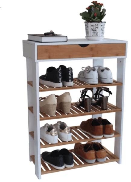Előszoba bútor > Cipőtárolók > Cipötartó, fehér/természetes, NUGET TYP 1 Cipőtartó NUGET TYP 1 Anyag: MDF/fenyőfa Szín: fehér/természetes Méretek (SzxVxH): 60x29x83,5 cm 4 soros Fiókkal Bontásban szállítva.