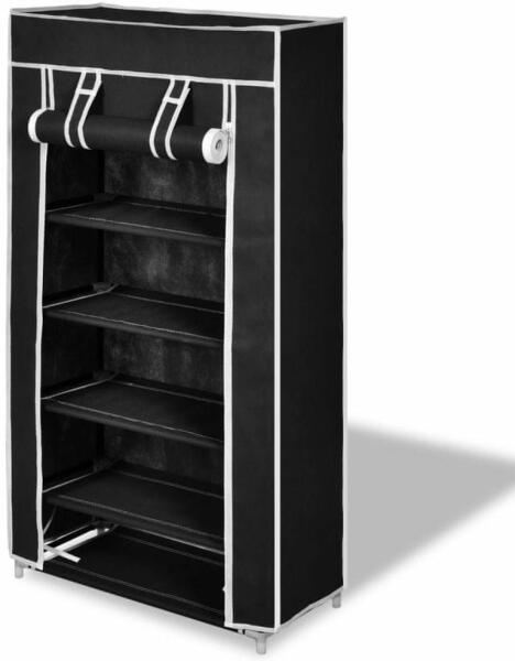 vidaXL Fekete szövet cipőszekrény borítóval 58 x 28 x 106 cm