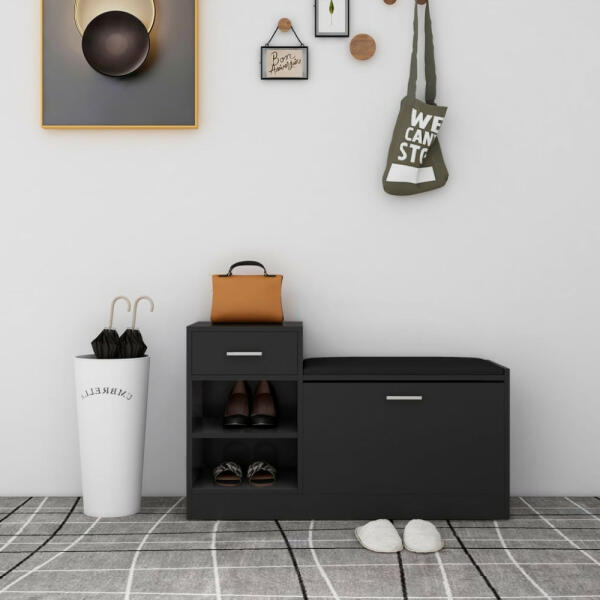 Ez az egyszerű és modern stílust jól ötvöző cipősszekrény ideális kiegészítő, melynek segítségével rendezetten tárolhatja cipőit. Minőségi szerelt faból készült, így kifinomult megjelenésű, stabil és tartós. A műbőr ülésnek köszönhetően könnyen tisztítható, és kényelmes ülőhelyet biztosít, miközben fel- vagy leveszi a cipőjét. Ez a tárolópad bőséges tárolóhelyet biztosít, és a legjobb társ előszobákba, folyosókra és lakóterekbe.